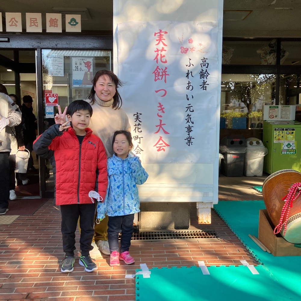 令和8年1月24日(土)10時から、令和7年度高齢者ふれあい元気事業「実花町会餅つき大会」が実花公民館で開催されました。夏の盆踊り大会と秋のふるさと祭りが台風や雨で中止となったため、町会全体で参加できる「餅つき大会」を開催しました。冷え込んだ天候でしたが、晴天に恵まれ、多くの参加者と入場者で賑わいました。