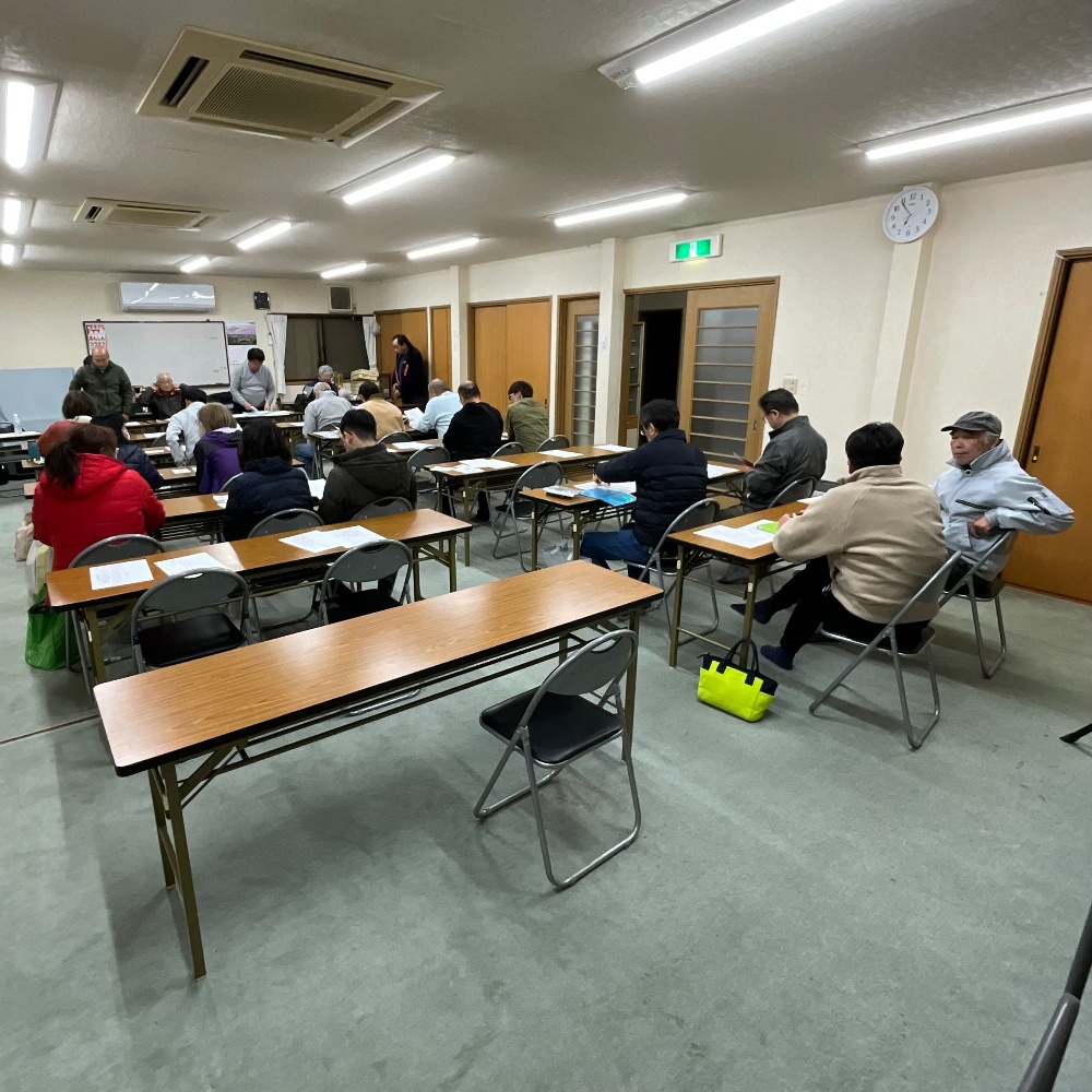 令和8年3月7日(土)19時より、実花町会自治会館において、「実花町会新旧組長引継会議」が開催されました。町会長の挨拶に続き、組長の職務内容について確認が行われました。議題は、①町会費徴収、②回覧板管理、③年間の事業内容、④会計監査委員の選出、⑤その他の5点が話し合われました。